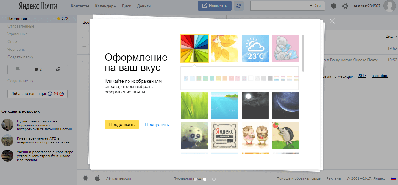 Почтовый ящик на Яндекс создан. Остается оформить его по желанию: