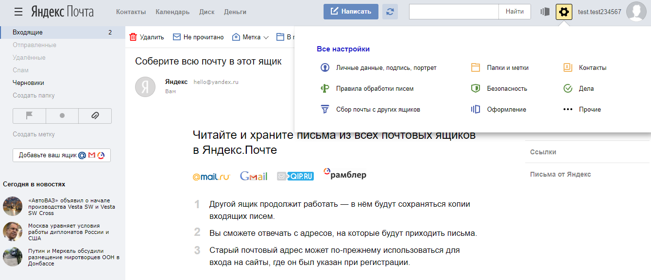 - Настройка сбора почты с других ящиков.