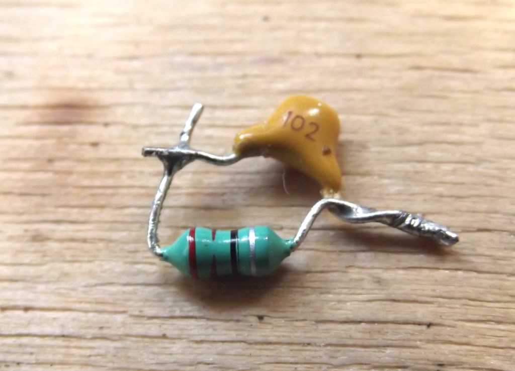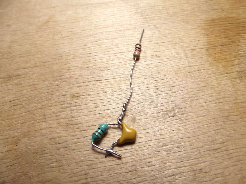 Ладно, ближе к делу. Берем паяльник в руки и спаиваем катушку и конденсатор параллельно. Катушка на 22 мкГн, а конденсатор на 1000пФ.