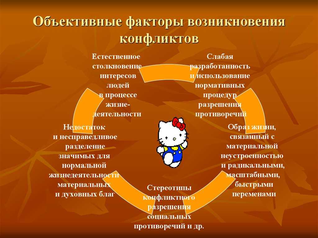 Понятие факторов возникновения конфликтов идентично причинам возникновения конфликтов, однако рассматривается в более широком значении: