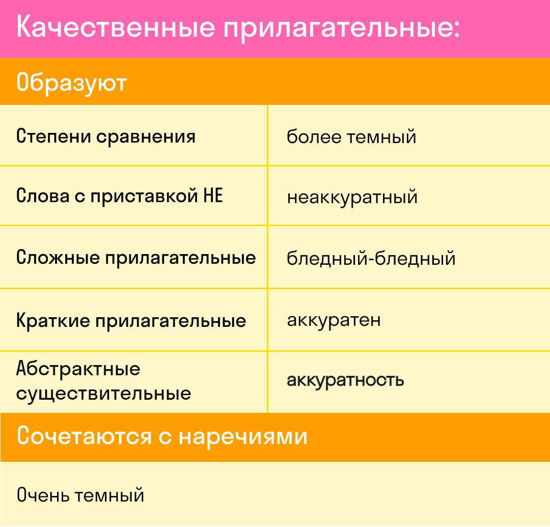Особенности качественных прилагательных
