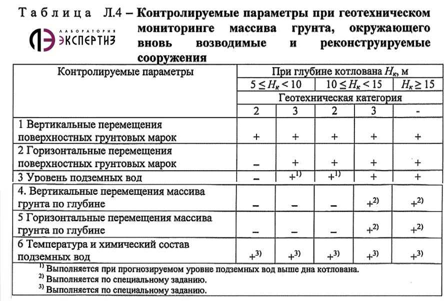 Падение уровня грунтовых вод или чрезмерное поднятие может говорить о неверной работе системы водопонижения, изменения гидрогеологии участка, неверных геологических изысканиях (или их неактуальности), нарушении технологии строительства, образования карстов и т.д. В каждом конкретном случае собираются все данные по геотехническому мониторингу, состоянии объекта и делаются выводы, после чего разрабатываются организационно-технические мероприятия по защите от деформаций с последующими наблюдениями в составе мониторинга объекта