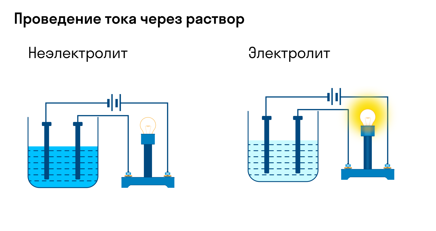 Как известно, электрический ток — это направленное движение свободных электронов или ионов, т. е. заряженных частиц. В растворах электролитов, проводящих ток, за это отвечают свободные ионы.