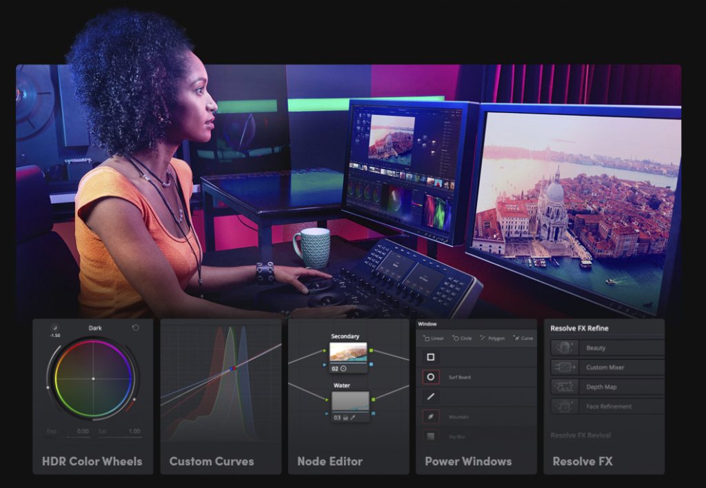 DaVinci Resolve. Профессиональная программа, работающая по принципу «Всё в одном». В ней можно выполнять цветокоррекцию, накладывать визуальные эффекты, работать со звуком и т.д. Еще одно преимущество DaVinci Resolve в том, что она работает не по подписке, а покупается один раз и навсегда. Существует бесплатная версия с ограниченным функционалом: малым количеством эффектов, отсутствием рендера в HDR. Из минусов — программа очень требовательна к «железу» и довольно часто расстраивает пользователей сбоями.