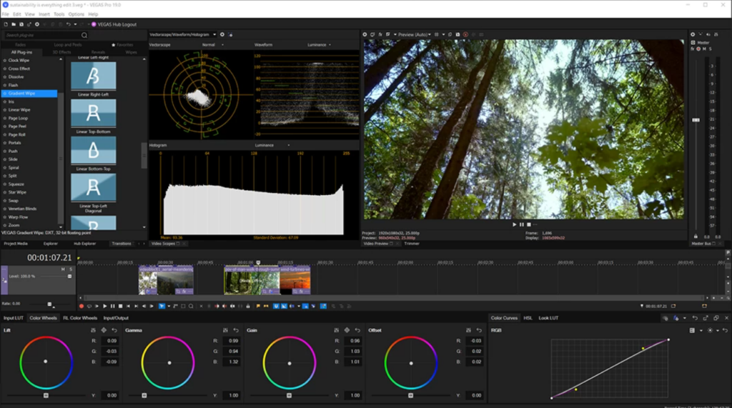 Vegas Pro. Еще десять лет назад он был главным конкурентом «Премьер Про». Преимущества программы — в гибкой работе с кеингом, большом количестве плагинов и уникальных эффектов, а также доступной цене. Однако цветокоррекцию в этой программе многие считают примитивной, а возможности анимации — недостаточными для профессионала.
