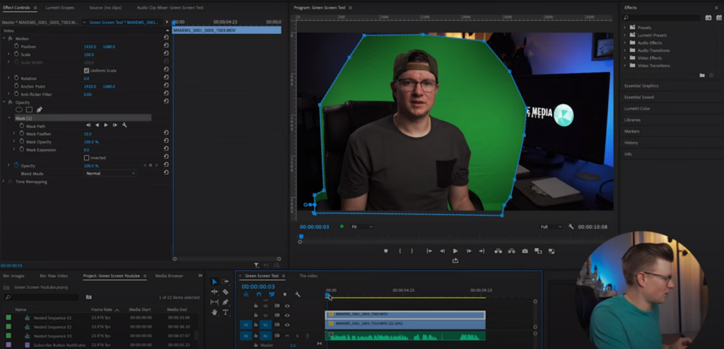 Если же при съемке видео зеленый экран не использовался и целевой цвет выбрать нельзя, то отделить персонажа от фона можно с помощью маски. Правда, для получения качественного результата персонаж должен стоять в статичной позе.
