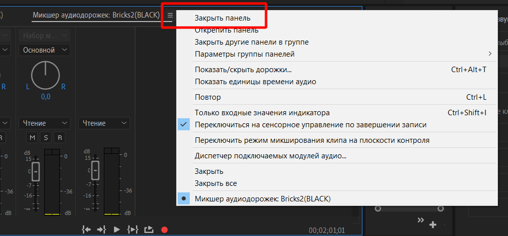 Чтобы удалить ненужную панель, нужно нажать на три полоски рядом с названием и нажать «Закрыть панель». Восстановить ее можно через пункт верхнего меню «Окно», поставив галочку напротив выключенной ранее панели.