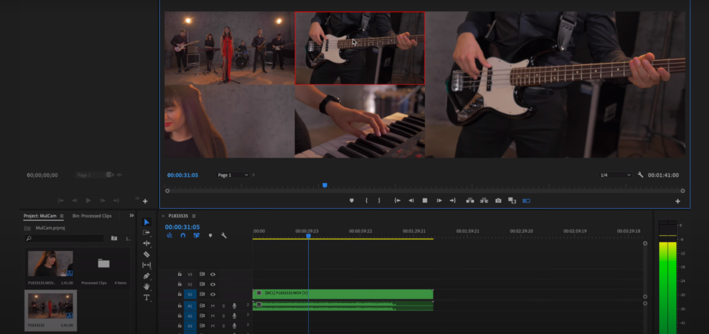 Интерфейс Premiere Pro при использовании функции мультикамерного монтажа музыкального клипа. Источник