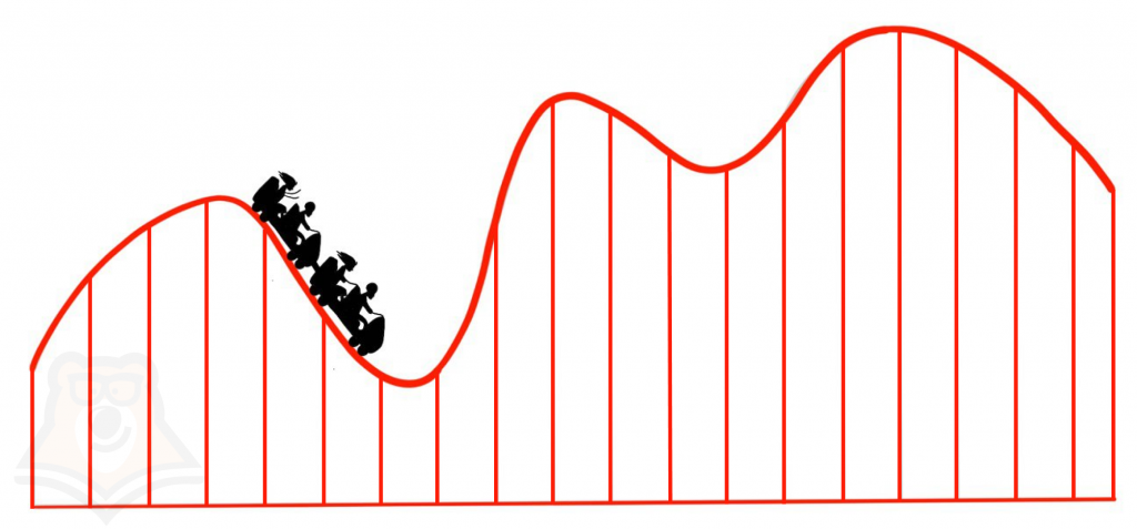 | Почему функции похожи на американские горки? Предположим, мы хотим прокатиться на американских горках. Представим их вид сбоку: это череда подъемов и резких спусков. Мы можем с легкостью описать их: на каких участках будет подъем, а на каких спуск, насколько крутыми они будут, сколько раз вагончик преодолеет границу между подъемом и спуском или спуском или подъемом. Мы даже можем предположить, на каких участках вагончик разгоняется сильнее. Точно так же можно описать и любую функцию. |