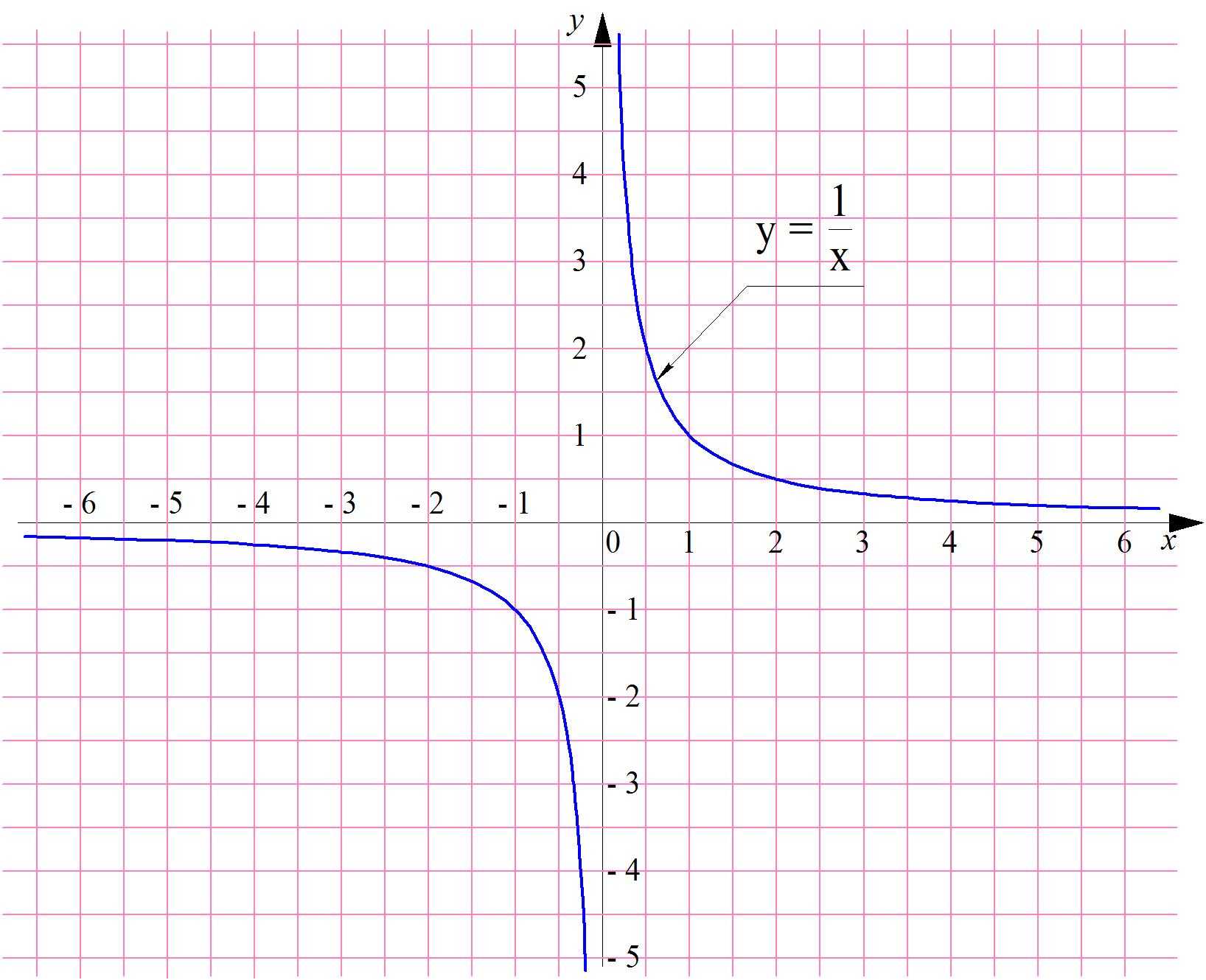 Видно, график не пересекает ось Оу, ведь число х = 0 не входит в область определения функции. Однако можно заметить, что при приближении х к нулю функция неограниченно возрастает: