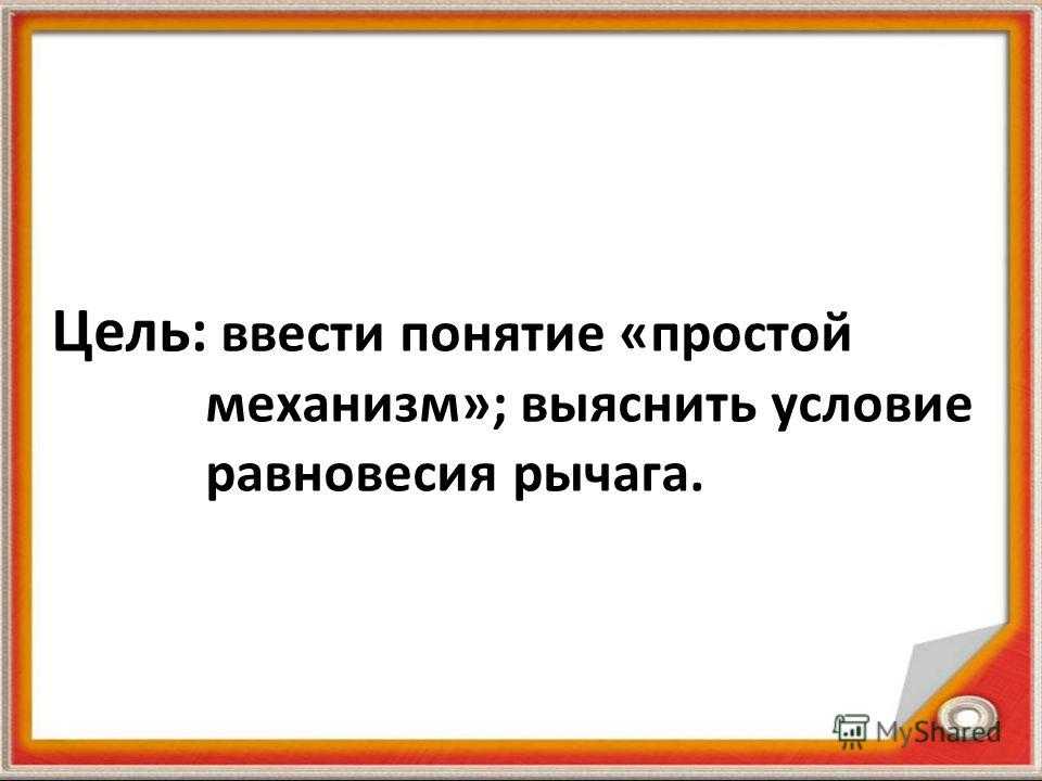 Цель: ввести понятие «простой механизм»; выяснить условие равновесия рычага.