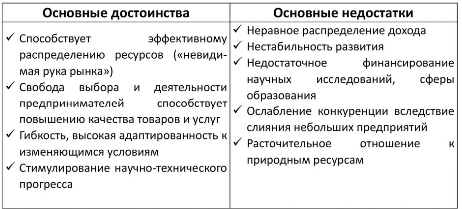 Как видно из таблицы 1, рыночная экономика имеет ряд преимуществ и недостатков в своей работе. Тем не менее, исторический опыт многих поколений доказывает, что этот тип экономической системы является наиболее эффективным и действенным. Внедрение рынка в мировую экономику позволило реализовать экономическую свободу для отдельных субъектов общества.