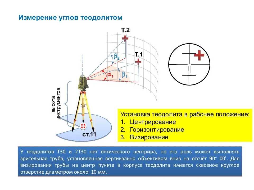 при помощи которой производится точное наведение на определенную точку, определение параметров ее расположения относительно вертикали, горизонтали или другой точки с известными параметрами.
