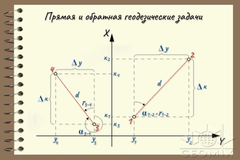 Значения \(X_{пос}\) \(Y_{пос}\) – координаты последующих пунктов, \(X_{пр}\) и \(Y_{пр}\) – предыдущих.