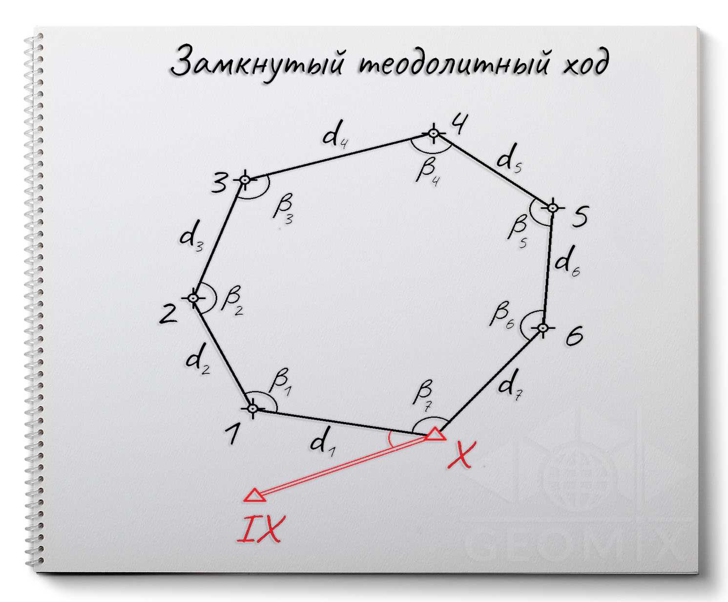 Для полигона, который имеет вид замкнутой геометрической фигуры, теоретическая сумма приращений будет равняться нулю для обеих координатных осей:
