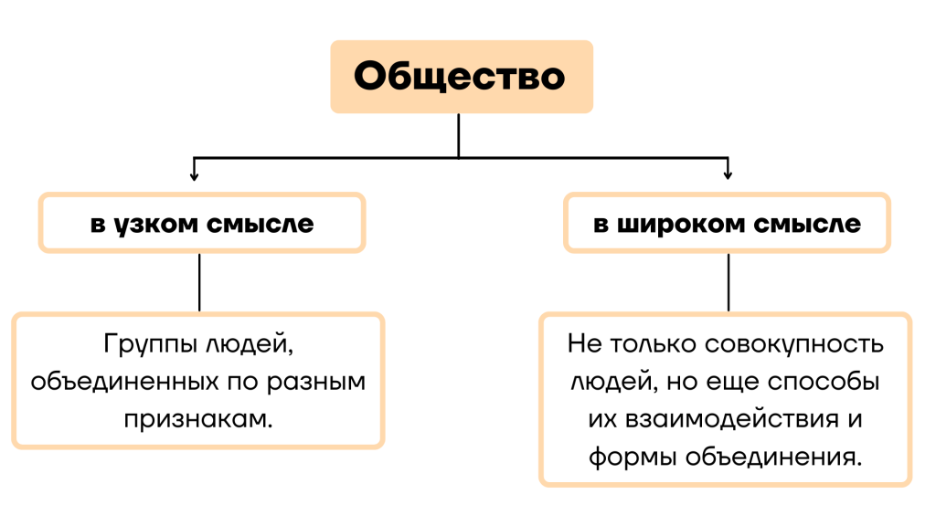В широком понимании общество — это обособившаяся от природы, но тесно связанная с ней часть материального мира, которая включает все способы взаимодействия и все возможные формы объединения людей.
