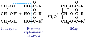 Жиры – сложные эфиры глицерина и высших одноосновных карбоновых кислот.