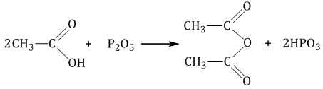 | Например, при дегидратации уксусной кислоты под действием оксида фосфора образуется ангидрид уксусной кислоты |