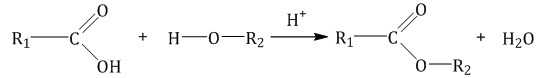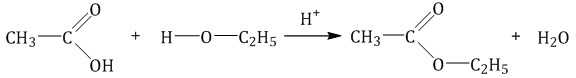 | Например, этанол реагирует с уксусной кислотой с образованием этилацетата (этилового эфира уксусной кислоты): |