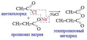 2. Взаимодействием галогенангидридов с солями карбоновых кислот
