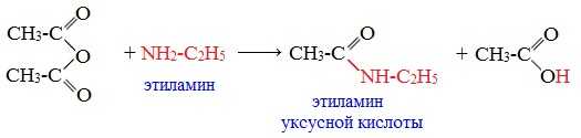 При взаимодействии линейных ангидридов с аммиаком, первичными или вторичными аминами образуются амиды карбоновых кислот:
