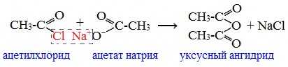 | Например, уксусная кислота реагирует с пентахлоридом фосфора с образованием хлорангидрида уксусной кислоты |