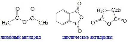 Ангидриды являются продуктами дегидратации карбоновых кислот. Различают линейные и циклические ангидриды карбоновых кислот: