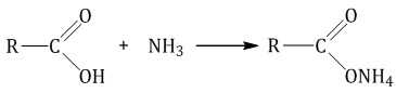 При взаимодействии аммиака с карбоновыми кислотами образуются соли аммония: