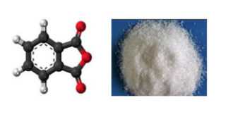 Фталевый ангидрид — белое кристаллическое вещество (т.пл.130,8С), легко возгоняется, растворим в этаноле. Обладает свойствами ароматических соединений. Легко реагирует с фенолами и их производными.