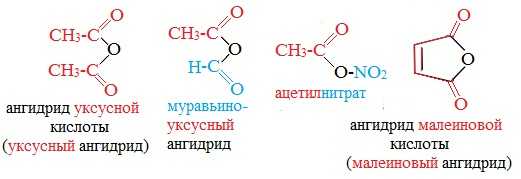 Названия ангидридов образуют из тривиальных названий соответствующих кислот: