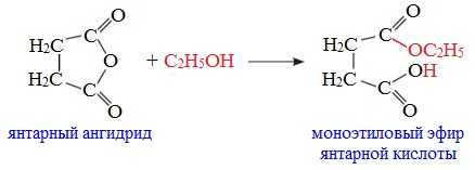 Циклические ангидриды реагируют со спиртами с образованием неполных (кислых) эфиров дикарбоновых кислот: