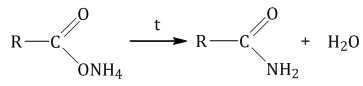 При нагревании карбоновые соли аммония разлагаются на амид и воду: