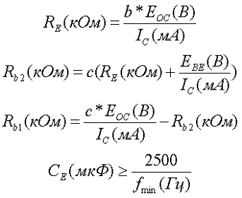 Для германиевых транзисторов выбираются: b ≈ 0,2; с – в пределах 3…5; UBE – в пределах 0,1…0,2.