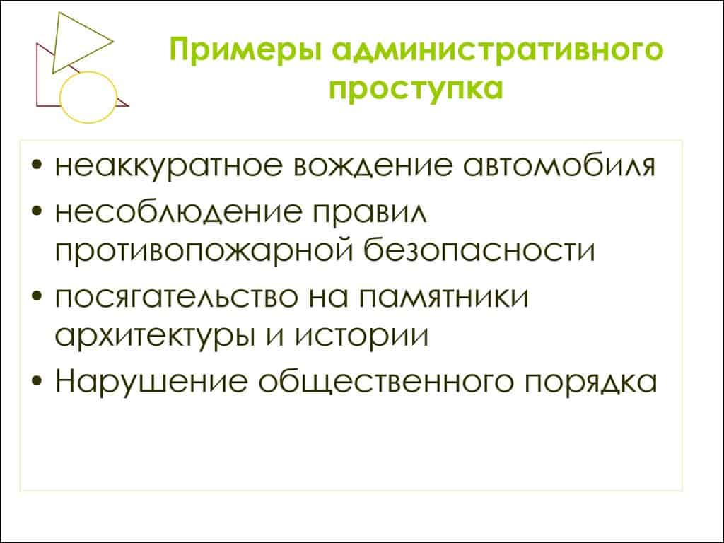 Что представляет собой административное правонарушение? Примеры можно указать следующие: