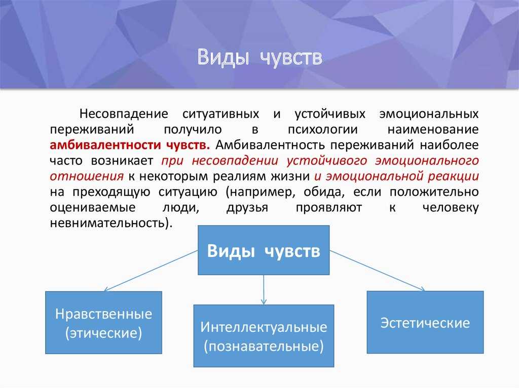 Современная наука выделяет 3 минимальные категории чувств, таких как: