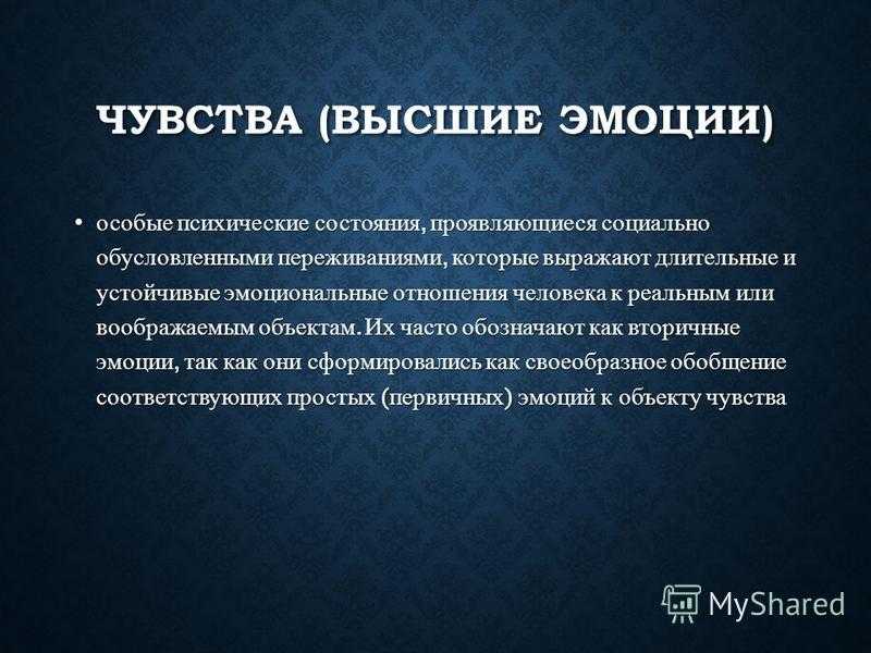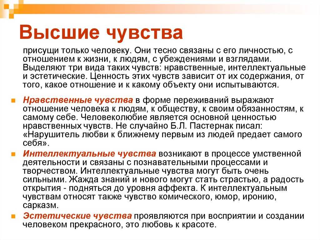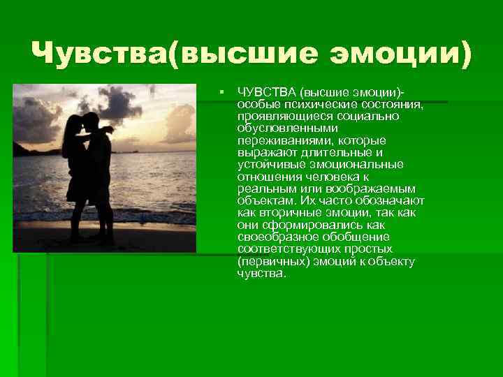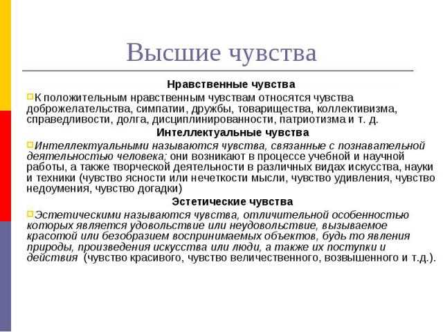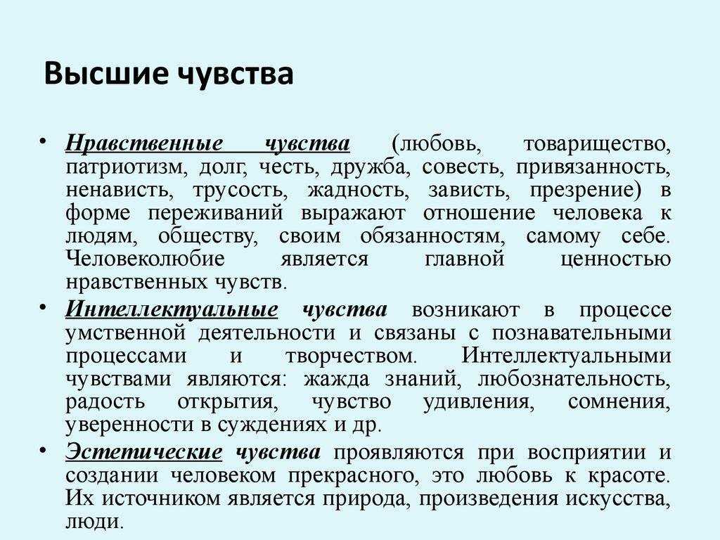 В эмоциональной сфере человека особое место занимают высшие чувства.