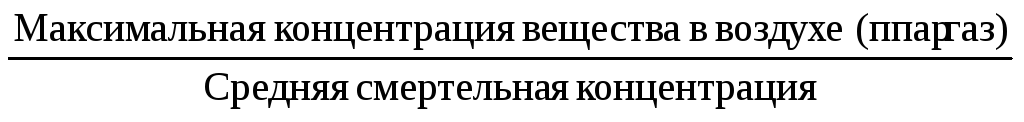 - средняя смертельная ингаляционная токсодоза (ССИТ) – количество АХОВ, вызывающее при попадании в организм через органы дыхания смертельный исход у 50% пораженных (размерность мг·мин/л);