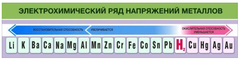 Реакции замещения с металлами, расположенными в электрохимическом ряду активности до водорода: