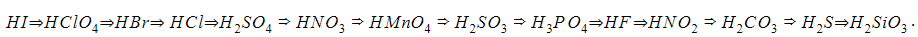 | 2 | сильная | HNO3, HClO3, H2SO4 |