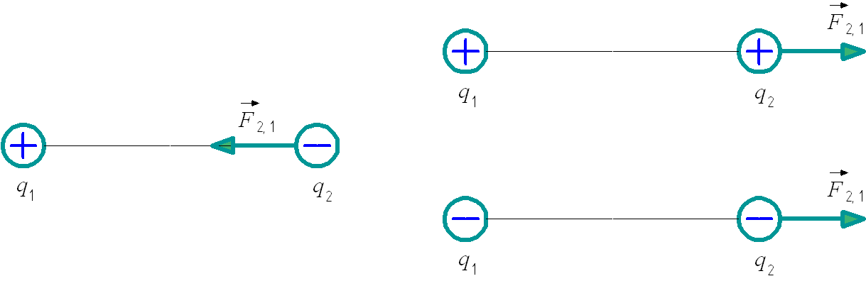 Остаётся добавить, что векторы сил направлены друг к другу для разноименных зарядов, и противоположно, в случае с одноимёнными зарядами. То есть между разноимёнными зарядами действует электрическое притяжение, а между одноимёнными – отталкивание.