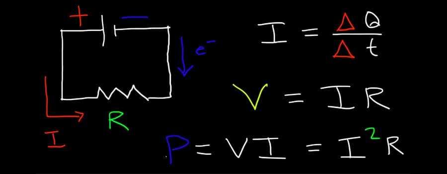 где P — мощность, измеряемая в ваттах (W), I — сила тока, измеряемая в амперах (A), V — напряжение, измеряемое в вольтах (V).