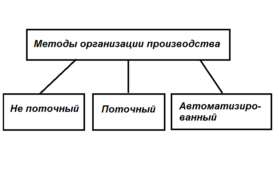 Схема методов организации производства включает в себя не поточные, поточные и автоматизированные приемы: