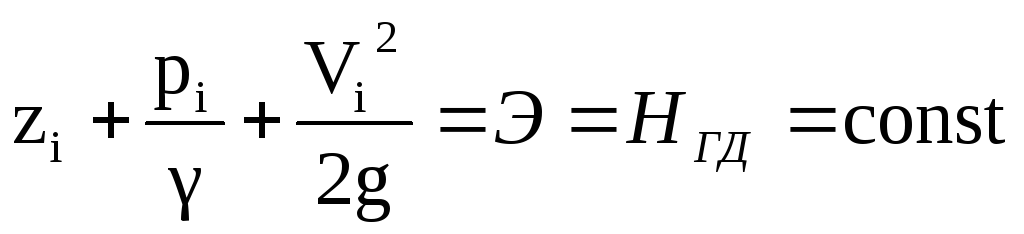 НГС= Э – гидродинамический напор или полная удельная энергия