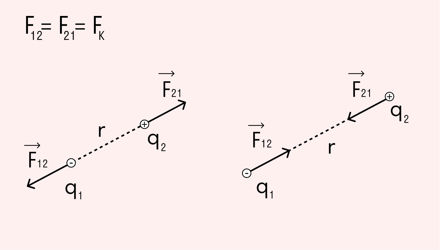 - направление действия силы направленно вдоль прямой соединяющей заряды;