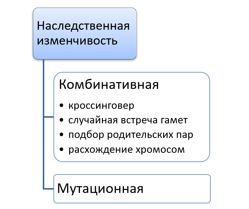 Наследственная изменчивость также починяется определенной классификации. Так выделяют: