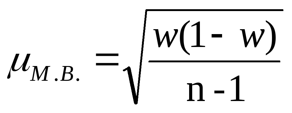 При изучении не численных признаков, если даже нет приблизительных сведений о выборочной доле, принимается w = 0,5, что по соответствует выборочной дисперсии в максимальном размере Дв = 0,5*(1-0,5) = 0,25.