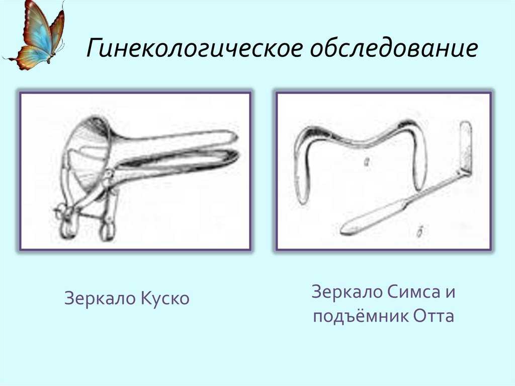 Во время осмотра гинекологи используют гинекологическое зеркало – одноразовый или многоразовый медицинский инструмент, выпускаемый в разных размерах и конструкциях, помогающий осмотреть состояние влагалищной слизистой и шейки матки. При правильном поведении пациентки во время осмотра (она должна быть максимально физически расслаблена) его применение не доставляет ей никакого дискомфорта.