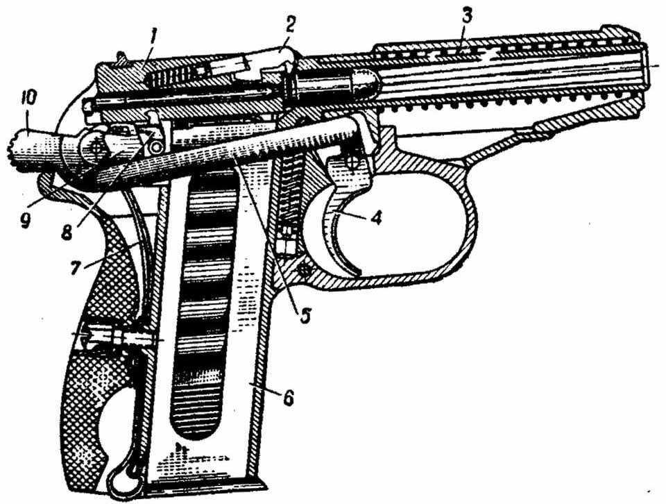 4. Пистолет состоит из следующих основных частей и механизмов (рис. 2):