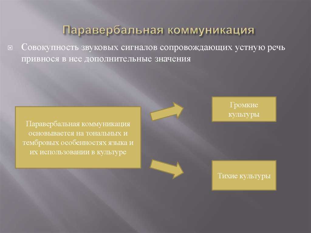 Назначение паравербальной коммуникации заключается в том, чтобы вызвать у партнера те или иные эмоции, ощущения, переживания, которые необходимы для достижения определенных целей и намерений. Такие результаты обычно достигаются с помощью паравербальных средств общения, к которым относятся: просодика — это темп речи, тембр, высота и громкость голоса; экстралингвистика — это паузы, кашель, вздохи, смех и плач (то есть звуки, которые мы воспроизводим с помощью голоса).Паравербальная коммуникация основывается на тональных и тембровых особенностях языка и их использовании в культуре. На этом основании можно выделять тихие и громкие культуры. В Европе, например, американцев осуждают за их манеру говорить слишком громко. Эта их черта вызвана тем обстоятельством, что очень часто для общительных американцев не имеет никакого значения, слушают ли их речь или нет. Для них гораздо важнее показать свою компетентность и открытость. В отличие от них англичане придерживаются совершенно другой точки зрения: они считают, что не следует вмешиваться не в свои дела. Поэтому у них особенно развита способность направлять свою речь прямо на нужного партнера и при этом учитывать не только уровень шума, но и расстояние.Культурно-специфические особенности паравербальной коммуникации выражаются и в скорости речи. Так, например, финны говорят относительно медленно и с длинными паузами. Эта языковая особенность создала им имидж людей, которые долго думают и неторопливо действуют. К быстро говорящим культурам относятся носители романского языка (французы, румыны, молдаване, цыгане). По этому показателю немцы занимают среднее положение, хотя скорость речи выше в Берлине и ниже на севере Германии.Следующим средством паравербальной коммуникации является манера, с одной стороны, говорить многословно, а с другой, лаконично, не используя слишком много слов. Во многих культурах часто содержание сказанного имеет второстепенный характер. Высоко ценится такая манера у арабов, в языке и литературекоторых содержание и значение сказанного не является главным. Там предпочтение отдается игре слов. Разные слова могут употребляться в одном и том же значении. Арабы очень любят выражать одну и ту же мысль разными словами.