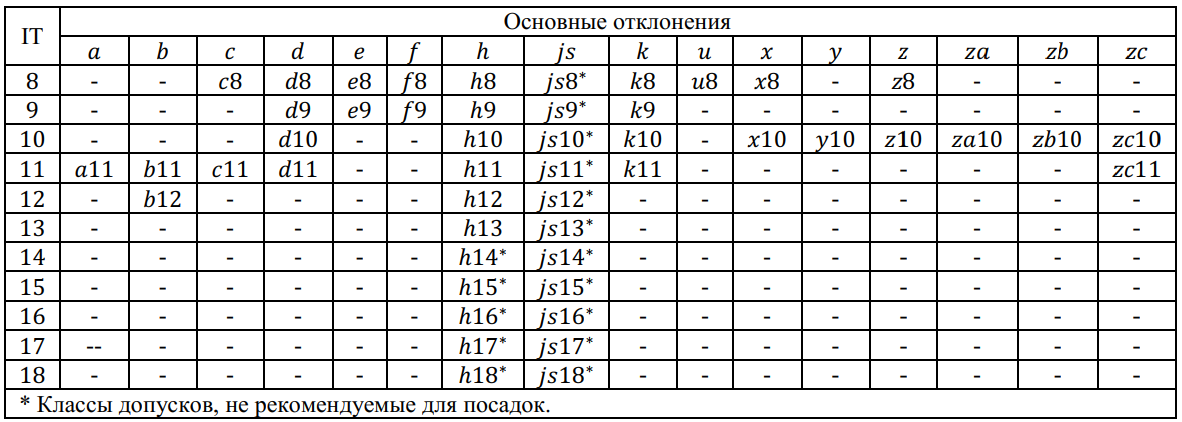 - классы допусков валов: h7, h8, h9, h10, h11, h12;